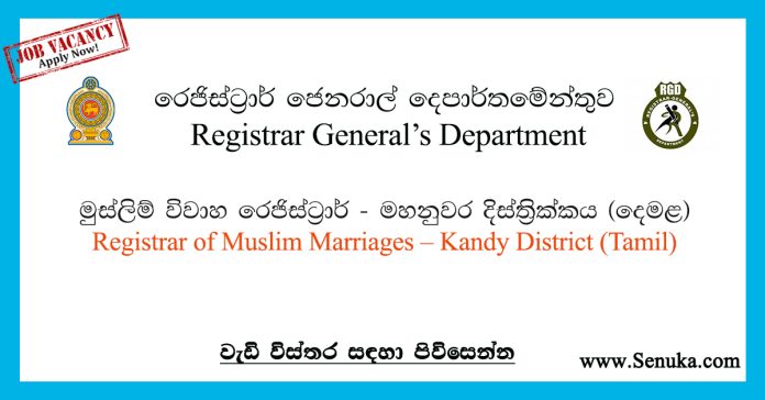 Registrar of Muslim Marriages – Kandy District (Tamil) – Registrar General’s Department