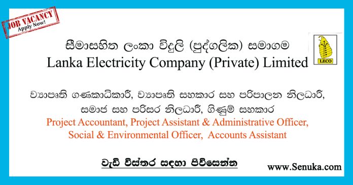 Project Accountant, Project Assistant, Administrative Officer, Accounts Assistant – Lanka Electricity Company (Private) Limited