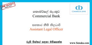 Assistant Legal Officer – Commercial Bank Vacancies 2025