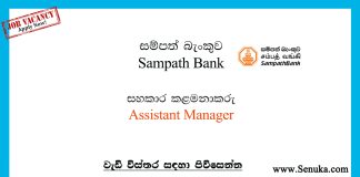 Assistant Manager (Treasury Back Office) – Sampath Bank Vacancies 2025