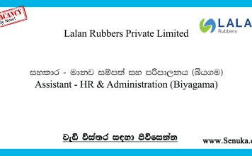 Assistant – HR & Administration (Biyagama) – Lalan Rubbers Private Limited Job Vacancies 2024