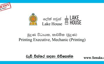 Printing Executive, Mechanic (Printing) – Lake House Vacancies 2024