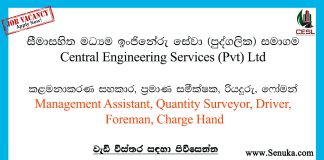 Management Assistant, Quantity Surveyor, Driver, Foreman – Central Engineering Services (Pvt)...