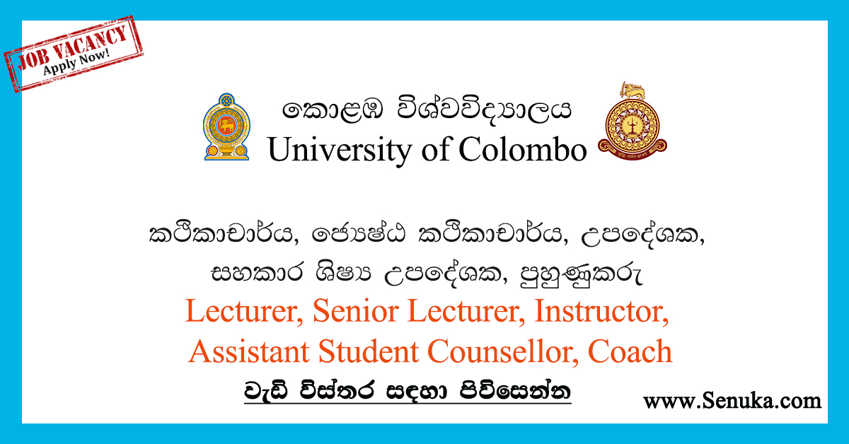 Lecturer, Senior Lecturer, Instructor, Counsellor, Coach – University of Colombo Vacancies...