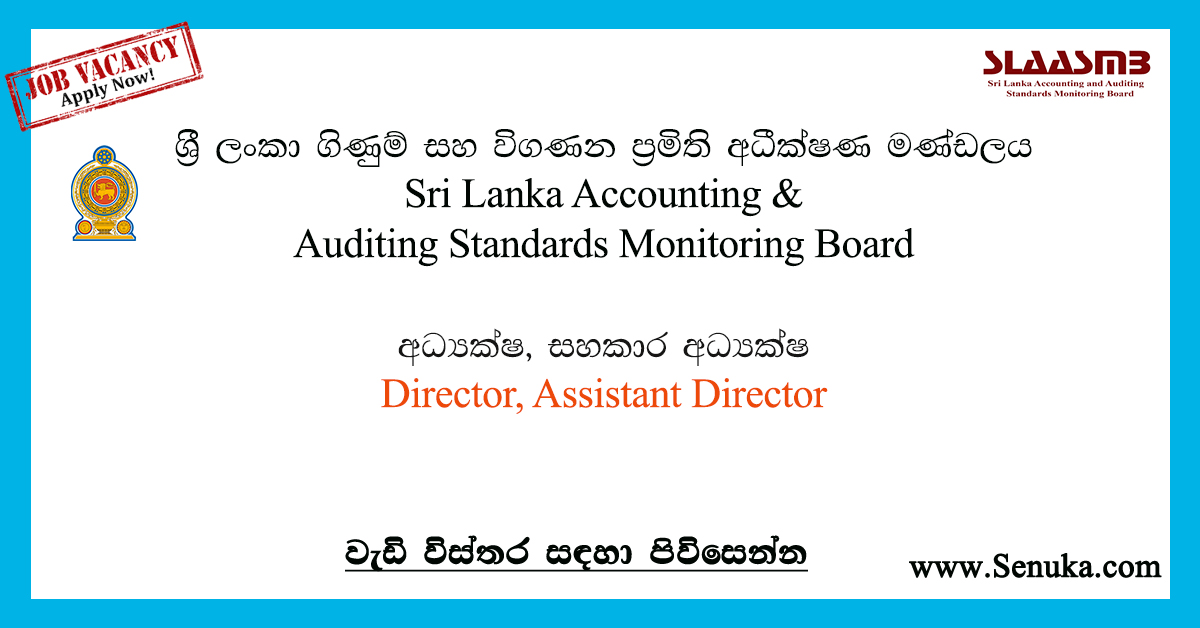 Director, Assistant Director – Sri Lanka Accounting & Auditing Standards Monitoring...