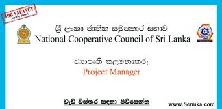 Project Manager – National Cooperative Council of Sri Lanka Vacancies 2025