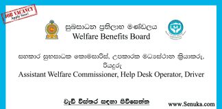 Assistant Welfare Commissioner, Help Desk Operator, Driver – Welfare Benefits Board...