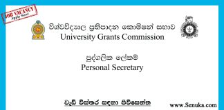 Personal Secretary to Chairman – University Grants Commission Vacancies 2024