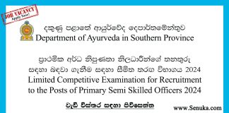 Primary Semi Skilled Officers – Department of Ayurveda in Southern Province...