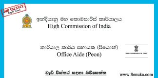 Office Aide (Peon) – High Commission of India Vacancies 2024