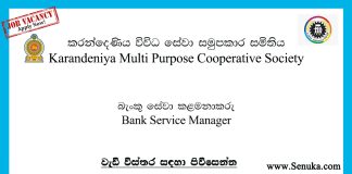 Bank Service Manager – Karandeniya Multi Purpose Cooperative Society Vacancies 2024