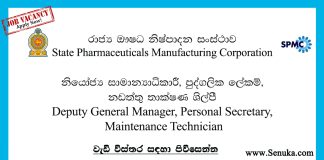 Deputy General Manager, Personal Secretary, Maintenance Technician – State Pharmaceuticals Manufacturing...