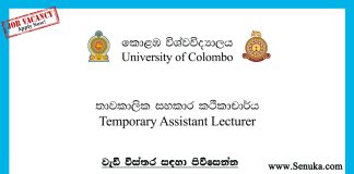 Temporary Assistant Lecturer (UCIARS) – University of Colombo Vacancies 2024