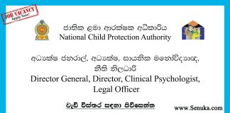 Director General, Director, Clinical Psychologist, Legal Officer – National Child Protection...