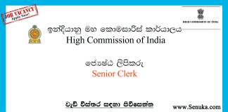 Senior Clerk – High Commission of India Vacancies 2025
