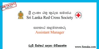 Assistant Manager – Sri Lanka Red Cross Society Vacancies 2025