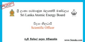 Scientific Officer – Sri Lanka Atomic Energy Board Vacancies 2025