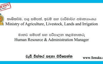 Human Resource & Administration Manager – Ministry of Agriculture, Livestock, Lands and Irrigation Vacancies 2024