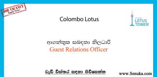 Guest Relations Officer – Colombo Lotus Tower Job Vacancies 2024